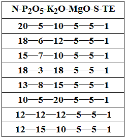 注:TE:微量元素鐵、硼、銅、鋅、錳等; 除上述產(chǎn)品及配方,還可根據(jù)用戶提出的配方要求進行生產(chǎn)。